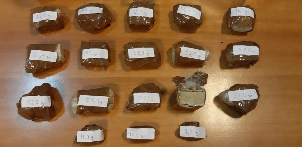 Σε έρευνα των αστυνομικών στον υπαίθριο χώρο, βρέθηκαν και κατασχέθηκαν 18 συσκευασίες ηρωίνης σε μορφή βράχου συνολικού βάρους 807,1 γραμμαρίων. Η ηρωίνη ήταν μέσα σε γυάλινα βάζα.