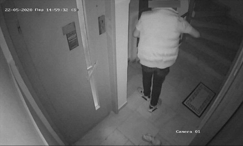 Μια κάμερα ασφαλείας στην Καβάλα, κατέγραψε έναν άνδρα να κλέβει ένα ζευγάρι παπούτσια που βρίσκονταν έξω από την πόρτα διαμερίσματος εντός πολυκατοικίας.