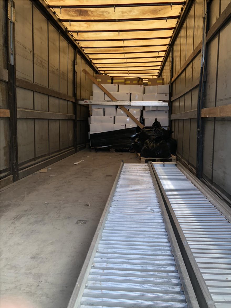 Κατόπιν έρευνας, σε δύο φορτηγά οχήματα, τα οποία ήταν σταθμευμένα εντός περιφραγμένου υπαίθριου χώρου στάθμευσης, βρέθηκαν και κατασχέθηκαν: