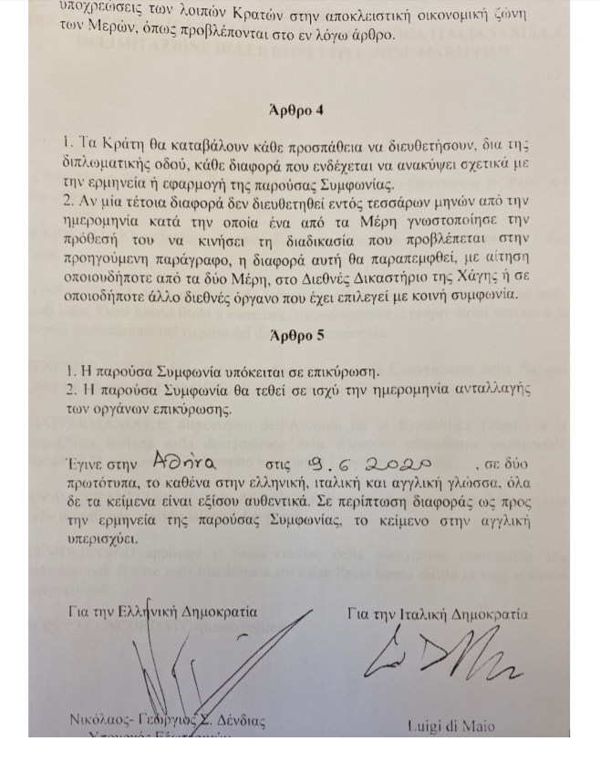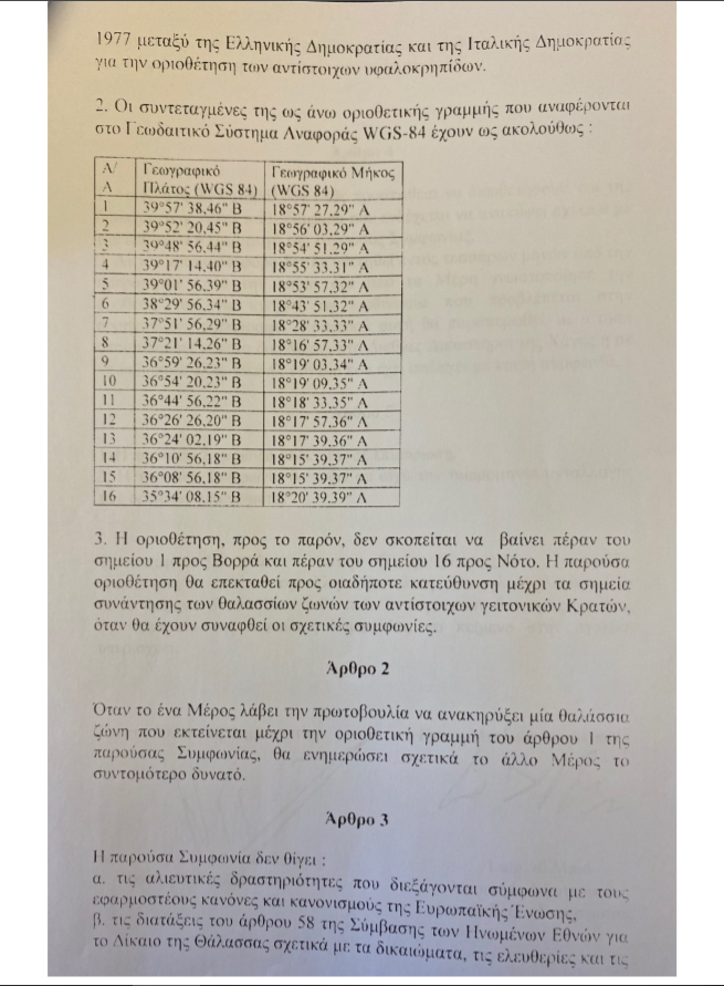 Επιπλέον δημιουργείται και το προηγούμενο της «συνδιαχείρισης» εντός ελληνικής θαλάσσιας ζώνης, αφού Ελλάδα & Ιταλία θα συνδιαχειρίζονται την αλιεία στην ελληνική ΑΟΖ μέχρι τα 6 ναυτικά μίλια από τις ελληνικές ακτές.