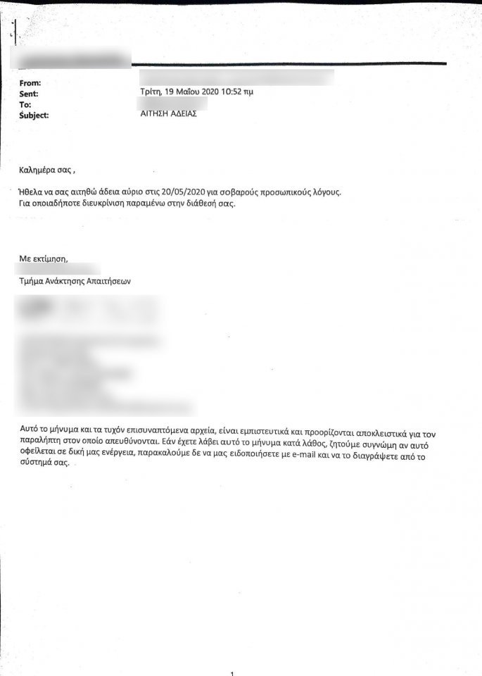 Όπως έγινε γνωστό, ενώπιον του εισαγγελέα που της άσκησε την ποινική δίωξη για απόπειρα ανθρωποκτονίας φέρεται να υποστήριξε ότι δεν βρισκόταν το πρωί της επίθεσης στη δουλειά της, επειδή είχε ραντεβού για μανικιούρ. Ωστόσο, όπως αποκαλύπτεται σε σχετικό έγγραφο της δικογραφίας, η 35χρονη είχε στείλει email στο δικηγορικό Γραφείο που εργαζόταν, μια ημέρα πριν την επίθεση στις 19 Μαΐου, ζητώντας άδεια για «σοβαρούς προσωπικούς λόγους» ακριβώς για την επόμενη ημέρα, στις 20 Μαΐου, όπου και πραγματοποιήθηκε η επίθεση στην 33χρονη Ιωάννα.