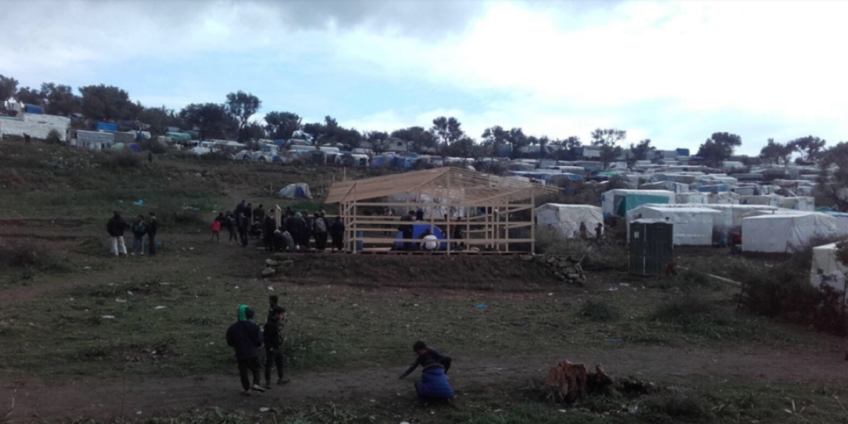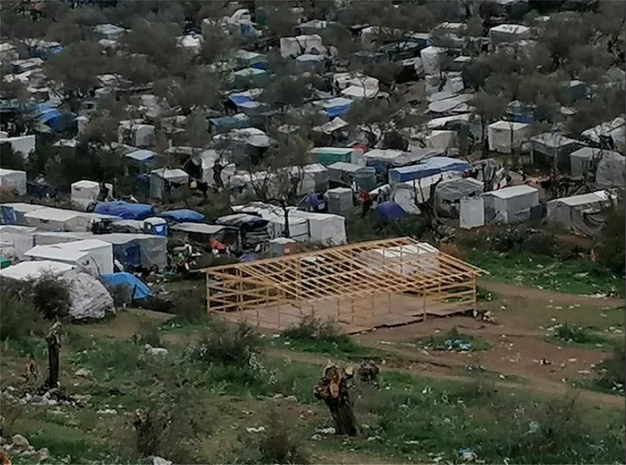 Ένα ξύλινο τζαμί, μεγάλων διαστάσεων, αντίκρισε η ιδιοκτήτρια ενός ελαιοκτήματος όταν επισκέφτηκε την καταπατημένη περιουσία της που βρίσκεται παραπλεύρως από το κέντρο υποδοχής και ταυτοποίησης μεταναστών στη Μόρια.