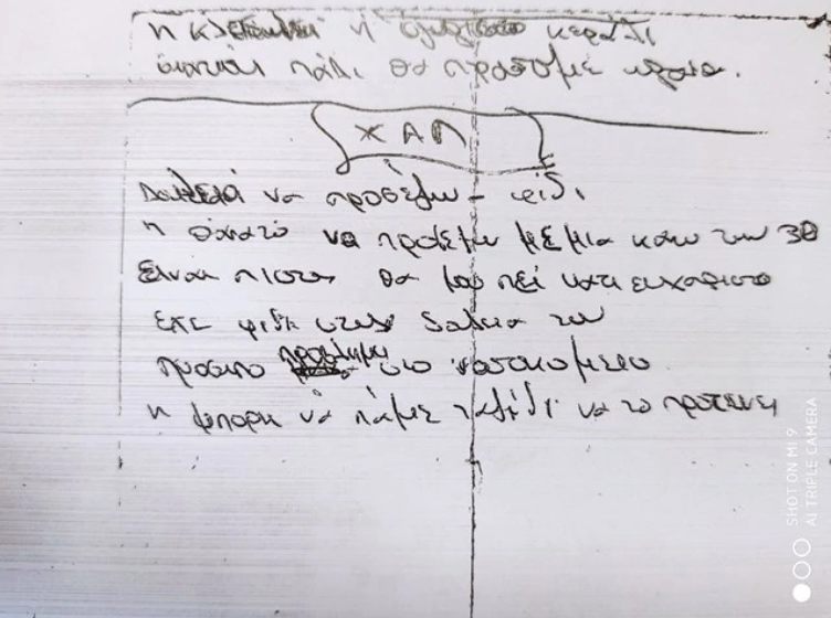 Αναφορές στα σημειώματα όπως: «Δουλειά να προσέξω φίδι”, “Αυτός, με αυτόν πορεύομαι, ξαφνικά εκεί που είναι μόνος του και θέλει να με δει κάποια του κολλάει. Αλλά δεν κάνει κάτι. Με κρατάει στα χέρια του” “Πρόσωπο πρόβλημα στο νοσοκομείο”, “Είναι πιστός θα μου πει κάτι ευχάριστο» αλλά και σκέψεις γύρω από μια ξανθιά και μια μελαχρινή, έχουν κεντρίσει ιδιαίτερα το ενδιαφέρον των αρχών που φαίνεται να οδηγούνται προς αυτό το συμπέρασμα.