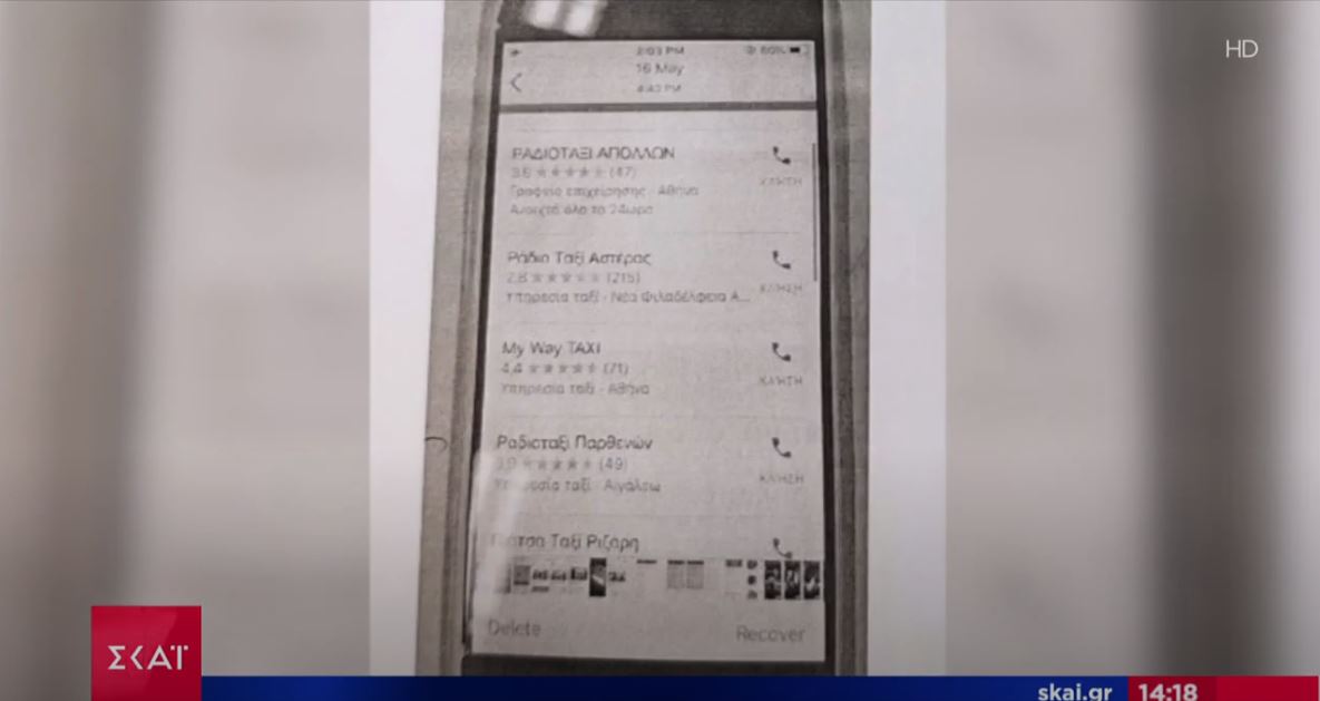 Επίσης, τρίτη φωτογραφία από το κινητό της δείχνει τις επιλογές εταιριών ταξί και ραδιοταξί την οποία και χρησιμοποίησε για να κλείσει το επίμαχο ραντεβού για την Καλλιθέα.