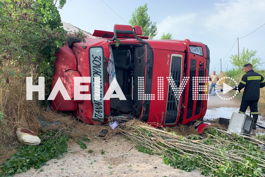Σοκαριστικό τροχαίο στην Πατρών – Πύργου: Ανετράπει νταλίκα – Ένας τραυματίας (φώτο)