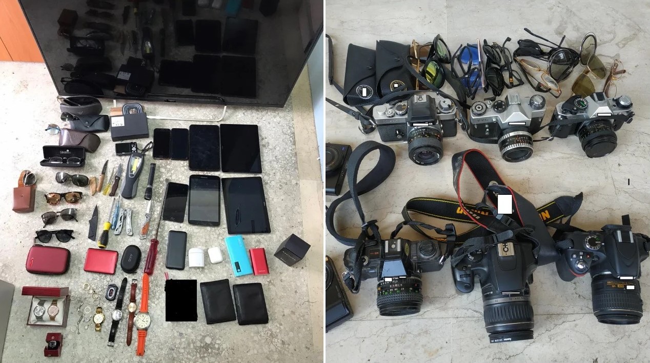 Πρόκειται για έναν άνδρα και μία γυναίκα οι οποίοι σύμφωνα με τα στοιχεία της έρευνας των αστυνομικών, το χρονικό διάστημα από 25.05.2020 έως και 23.06.2020 ο άνδρας είχε διαπράξει έντεκα κλοπές, τα αφαιρεθέντα αντικείμενα από τις οποίες, παρέδιδε στην γυναίκα συνεργάτιδα του. Τα κοσμήματα και άλλα αντικείμενα που είχε αφαιρέσει ήταν συνολικής χρηματικής αξίας 14.870 ευρώ. Επίσης για τον συλληφθέντα αλλοδαπό, σχηματίστηκε δικογραφία για παραβάσεις της Νομοθεσίας περί ναρκωτικών ουσιών.