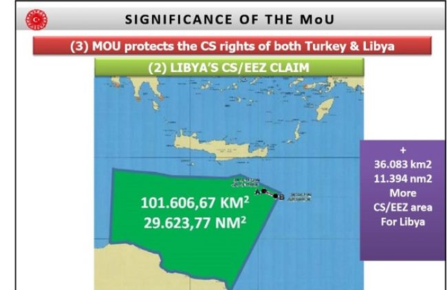 Μπορεί η περιοχή να μην συμπίπτει με το τουρκολιβυκό μνημόνιο, αλλά συμπίπτει με την ελληνική ΑΟΖ που προκύπτει από τις ακτές της Κρήτης και είναι εντός της «λιβυκής ΑΟΖ» που επικαλείται η κυβέρνηση-μαριονέτα της Τρίπολης και η Τουρκία.