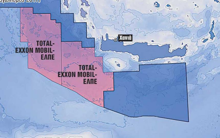 Τα δύο μπλοκ δυτικά και νοτιοδυτικά της Κρήτης έχουν παραχωρηθεί στην κοινοπραξία Total (40%) – ExxonMobil (40%) –ΕΛΠΕ (20%). Ο γαλλικός κολοσσός κατέχει παράλληλα τον ρόλο του operator και στις δύο παραχωρήσεις.