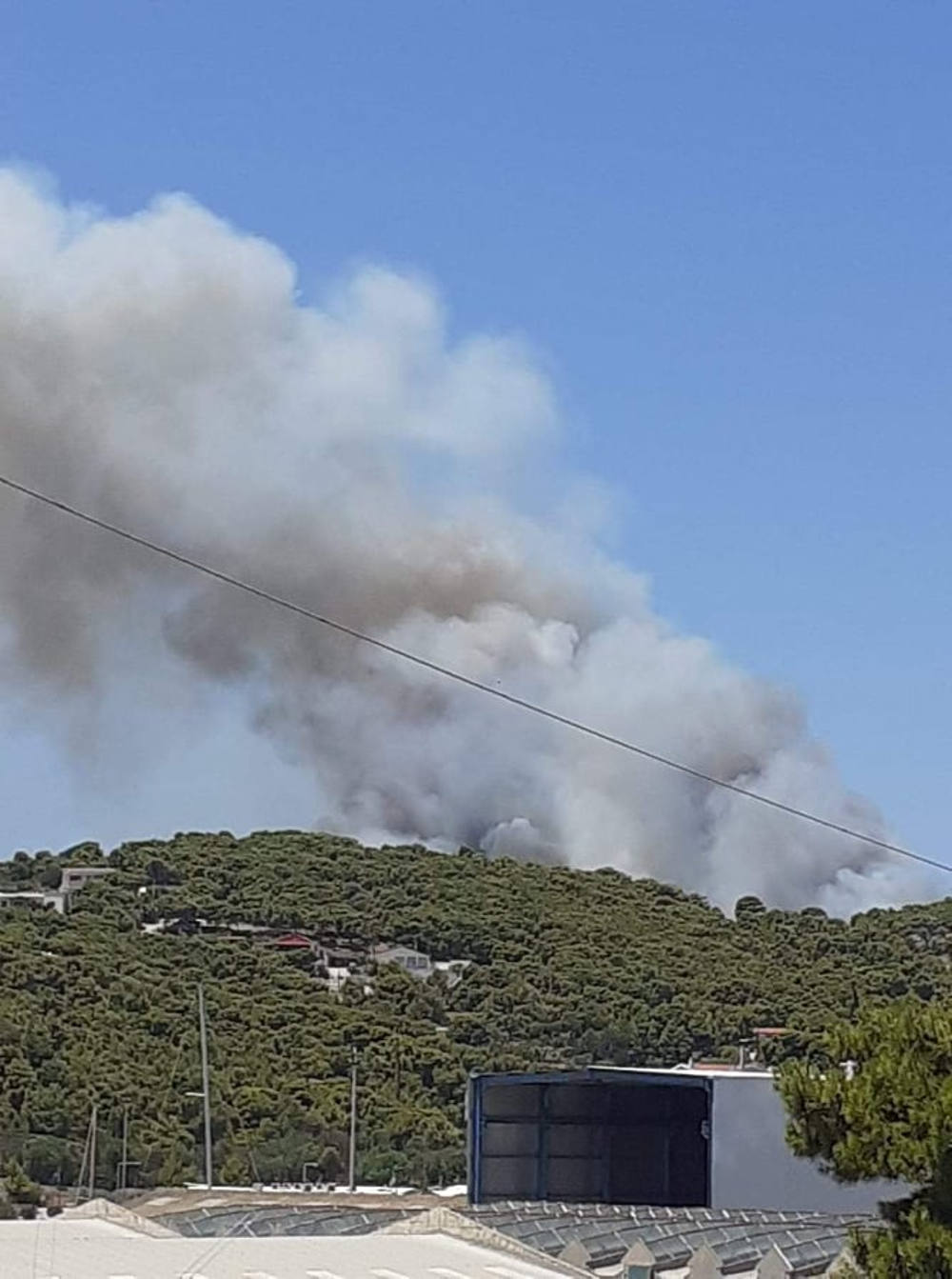 Οι φλόγες ξεκίνησαν από ξερά χόρτα και κατευθύνεται σε δασική -πευκόφυτη- περιοχή, στην Πούντα Ζέσα του δήμου Λαυρεωτικής.