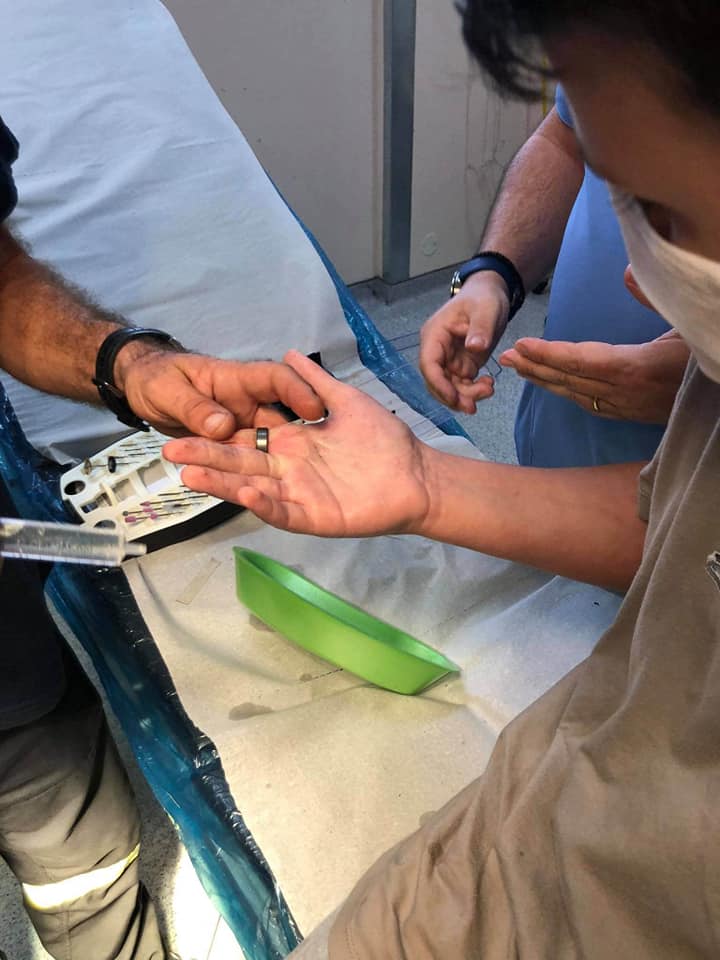 Η πυροσβεστική, που κλήθηκε να βοηθήσει, μετέφερε το παιδί στο νοσοκομείο, όπου ο Διευθυντής των Επειγόντων Περιστατικών σε συνεργασία με εθελοντή της Λέσχης Ειδικών Δυνάμεων Μαγνησίας κατάφεραν να βγάλουν το ρουλεμάν-δακτυλίδι, κόβοντάς το με ειδικό τροχό.