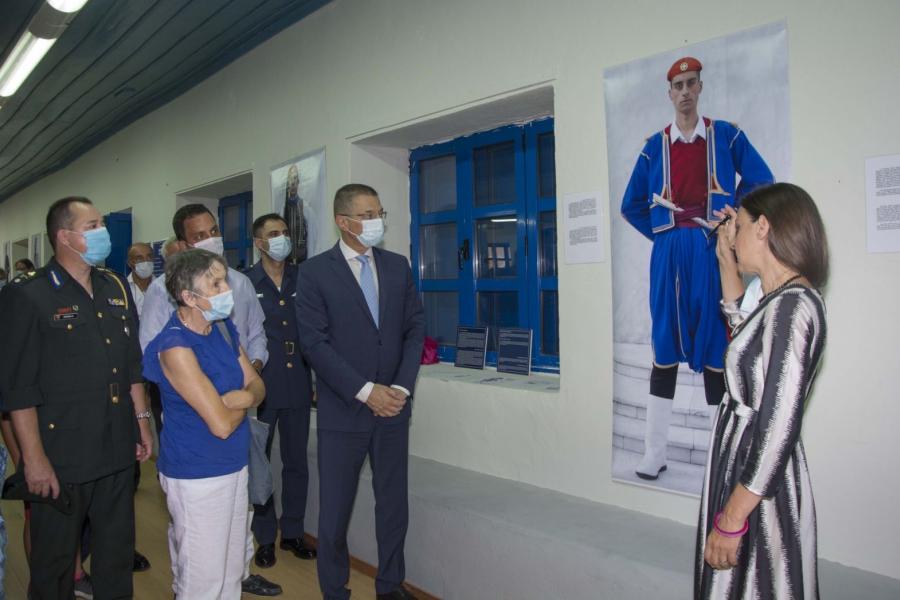 Τελειώνοντας, με την ευκαιρία της εδώ παρουσίας μου σήμερα, έχω τη χαρά να εγκαινιάσω την έκθεση φωτογραφίας της κ. Δήμητρας Χατζηαδάμ, με τίτλο “Εύζωνες: Οι φύλακες των αφανών”, μια έκθεση η οποία τελεί υπό την αιγίδα των Υπουργείων Εθνικής Άμυνας και Εξωτερικών και συνιστά εξαιρετική εικαστική παρέμβαση στον κόσμο της Προεδρικής Φρουράς, προσεγγίζοντας μέσα από φωτογραφίες και εκθέματα, την αυστηρή καθημερινότητα των Ευζώνων μας, αναδεικνύοντας την προσωπική, ανθρώπινη πλευρά τους, καθώς επίσης το υψηλό τους φρόνημα και το ανεπίληπτο ήθος τους.