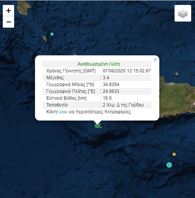 Σεισμός μεγέθους 3,4 ρίχτερ σημειώθηκε πριν από λίγα λεπτά στην Γαύδο, στο νησάκι νότια της Κρήτης.