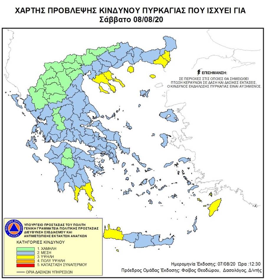 Δείτε στο χάρτη, τις περιοχές που αντιμετωπίζουν κίνδυνο σήμερα Σάββατο, 8 Αυγούστου