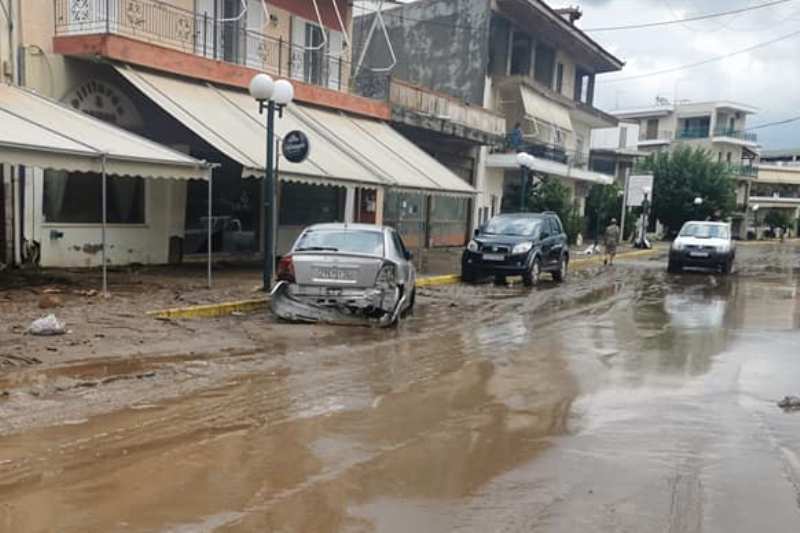 Ο ποταμός Μεσσσάπειος ξεχείλισε και το νερό κατέστρεψε τα πάντα στο πέρασμά του στο κέντρο της πόλης, με τα σπίτια να πλημμυρίζουν και τα αυτοκίνητα να μετακινούνται από τη θέση τους κι άλλα να αναποδογυρίζουν από την ισχυρή βροχόπτωση και τους ισχυρούς ανέμους. Η κυκλοφορία προς την Αρτάκη, καθώς και προς την Καστέλλα, γίνεται πλέον με δυσκολία, αφού ο δρόμος έχει γεμίσει με λάσπη.