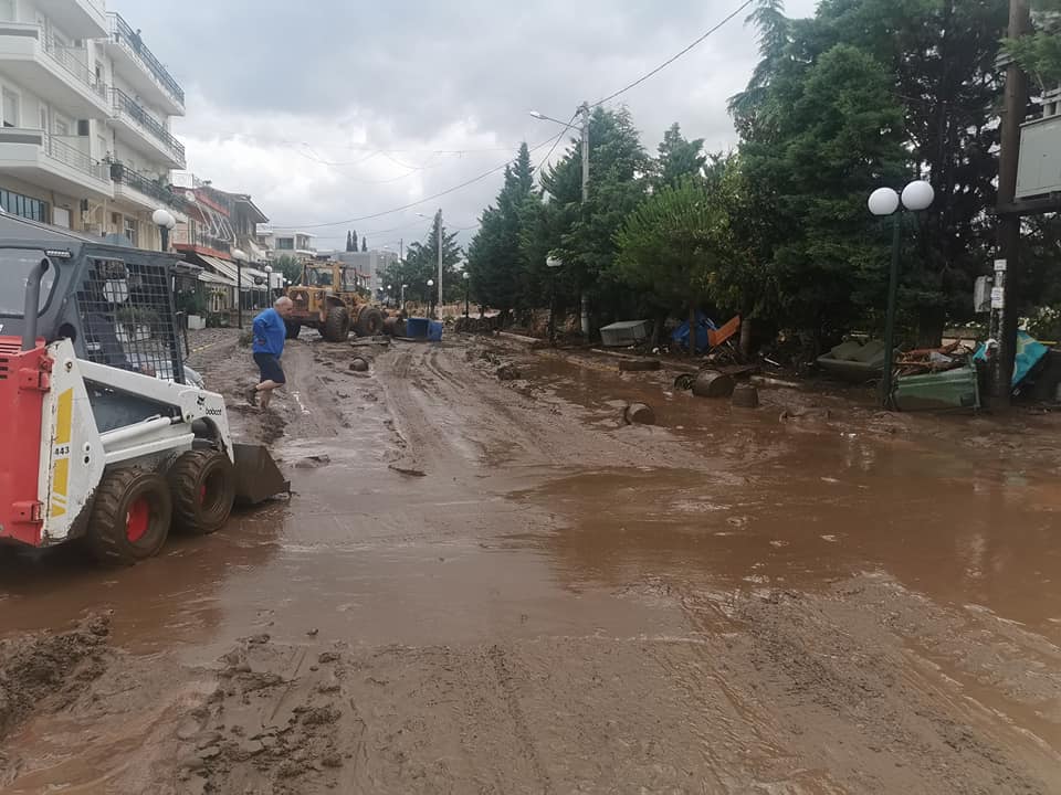 Ο ποταμός Μεσσσάπειος ξεχείλισε και το νερό κατέστρεψε τα πάντα στο πέρασμά του στο κέντρο της πόλης, με τα σπίτια να πλημμυρίζουν και τα αυτοκίνητα να μετακινούνται από τη θέση τους κι άλλα να αναποδογυρίζουν από την ισχυρή βροχόπτωση και τους ισχυρούς ανέμους. Η κυκλοφορία προς την Αρτάκη, καθώς και προς την Καστέλλα, γίνεται πλέον με δυσκολία, αφού ο δρόμος έχει γεμίσει με λάσπη.