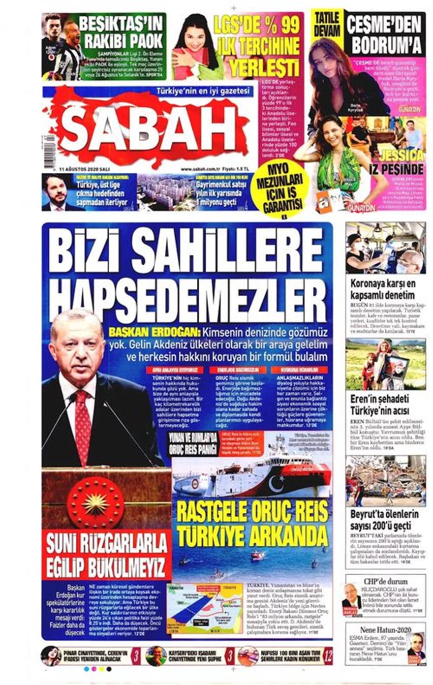 «Δεν υποχωρούμε στην Ανατολική Μεσόγειο. Το Oruc Reis ξεκίνησε πορεία 6 μηνών. Το Oruc Reis θα πάει νότια του Καστελόριζου, της Ρόδου, νότια της Κρήτης και ο τελικός του στόχος θα είναι τα σύνορα του μνημονίου Τουρκίας Λιβύης», αναφέρει η φιλοκυβερνητική εφημερίδα Yeni Safak.