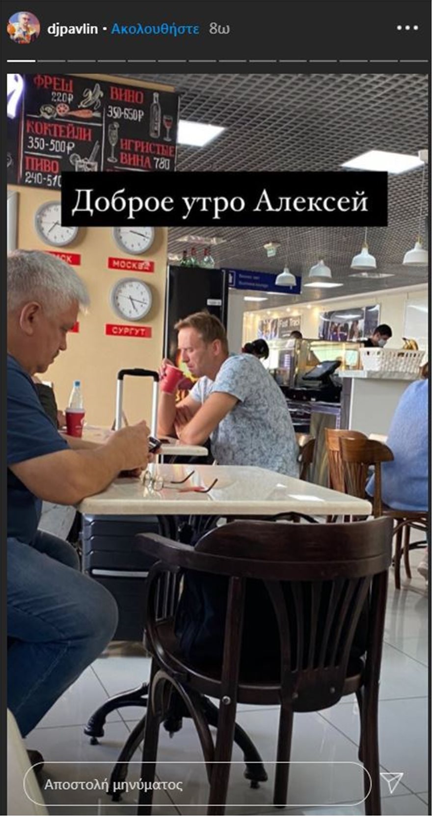 Σύμφωνα με την Daily Mail, ο διευθυντής του Vienna Cafe στο αεροδρόμιο του Τομσκ όπου τραβήχτηκε η επίμαχη φωτογραφία, είπε ότι ο υπάλληλος που σέρβιρε τον Ναβάλνι δεν μπορεί να εντοπιστεί. Όπως εξήγησε, η καφετέρια έχει κλείσει και βρίσκεται σε εξέλιξη έρευνα. Το πρακτορείο ειδήσεων Ίντερφαξ μετέδωσε επικαλούμενο τους ιδιοκτήτες του καφέ ότι προσπαθούν μέσω του υλικού από τις κάμερες παρακολούθησης να διευκρινίσουν τι συνέβη.