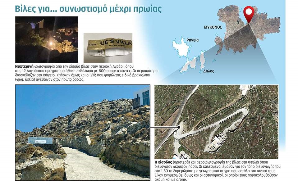 Παρακολουθούσαν τον τρόπο που λειτουργούσαν οι διοργανωτές, πώς προσκαλούσαν κόσμο, τις κινήσεις των τσιλιαδόρων, τα μηνύματα στα κινητά. Κι όταν εντόπιζαν κρυφά πάρτι ενημέρωναν τους συναδέλφους τους από την υποδιεύθυνση της Μυκόνου να επέμβουν, συνήθως για «διατάραξη κοινής ησυχίας».