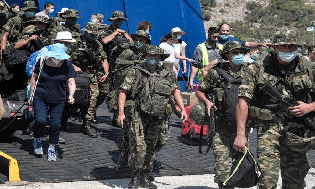 «Η Ελλάδα αποβίβασε στρατό στο Καστελόριζο, μόλις 2 χλμ από την Τουρκία» υποστηρίζουν τουρκικά δημοσιεύματα, δημοσιοποιώντας φωτογραφίες του Γαλλικού Πρακτορείου Ειδήσεων (AFP) που δείχνουν Έλληνες στρατιωτικούς ν’ αποβιβάζονται μαζί με τουρίστες στο νησί.