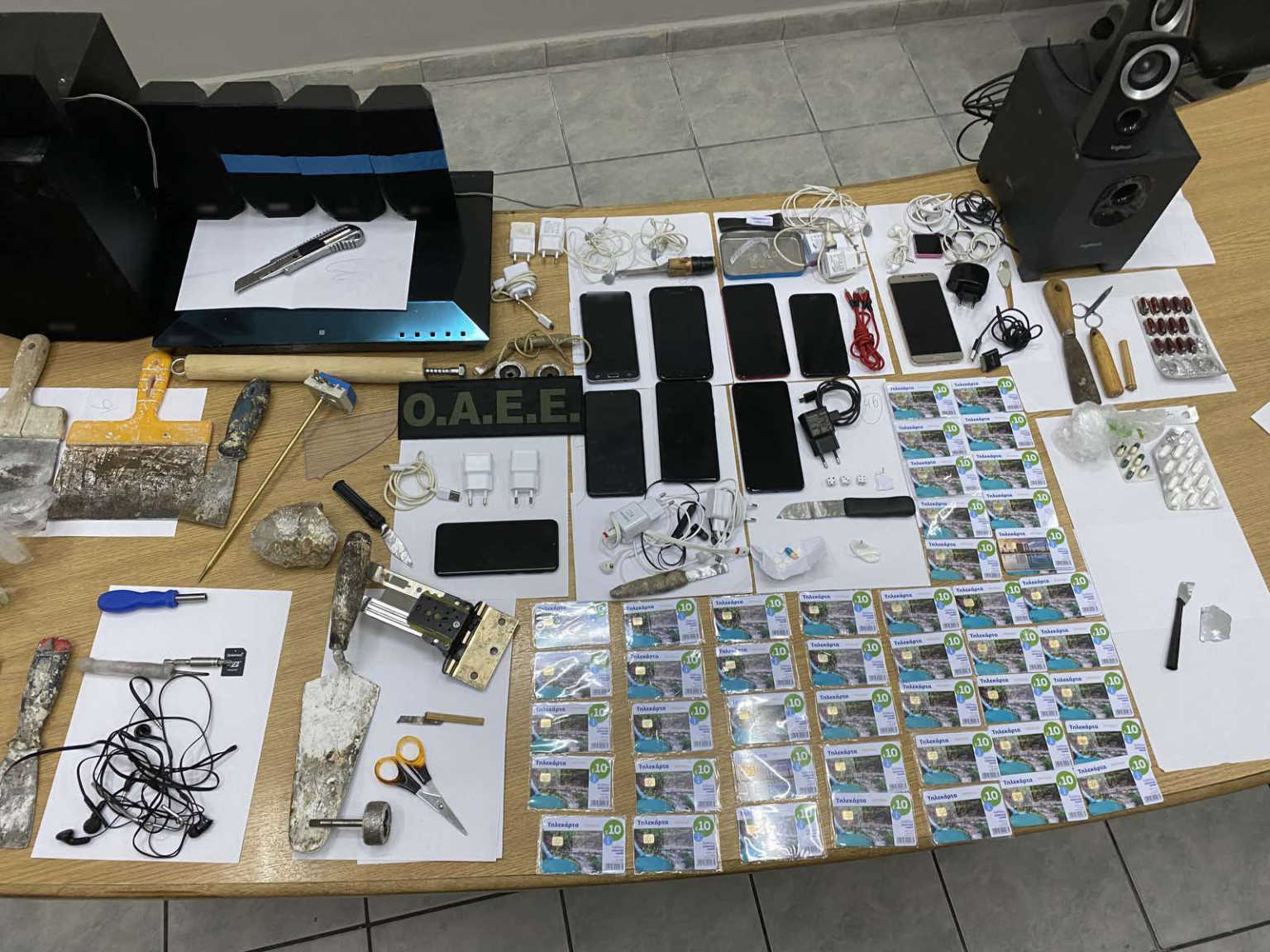 Επίσης, ανακάλυψαν αυτοσχέδια μαχαίρια, σουβλιά, ναρκωτικά και κινητά τηλέφωνα, ένα mp3 και ηχεία subwoofer.