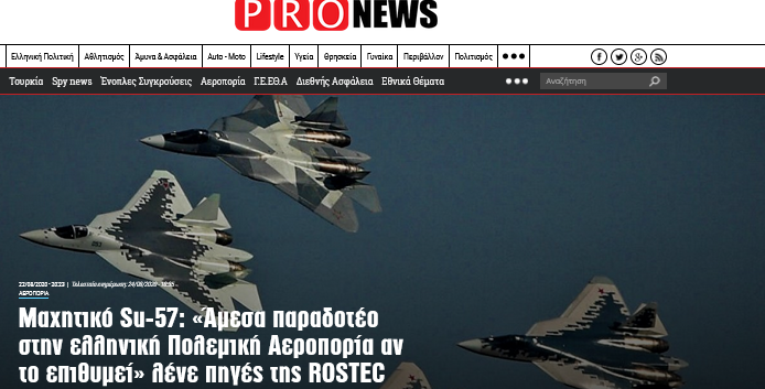 Μάλιστα οι Ρώσοι αξιωματούχοι δήλωσαν ότι η προσφορά δεν αφορά μόνο «αμυντικά» όπλα, αφήνοντας να εννοηθεί πως εκτός από αντιαεροπορικά συστήματα μπορούν να προμηθεύσουν την Ελλάδα με οποιοδήποτε άλλο όπλο όπως πυραύλους εδάφους-εδάφους Iskander, συστήματα επάκτιας άμυνας Bastion και όπως είχε αποκαλύψει κατ΄αποκλειστικότητα το pronews.gr ακόμη και το υπερμαχητικό 5ης γενιάς Su-57!