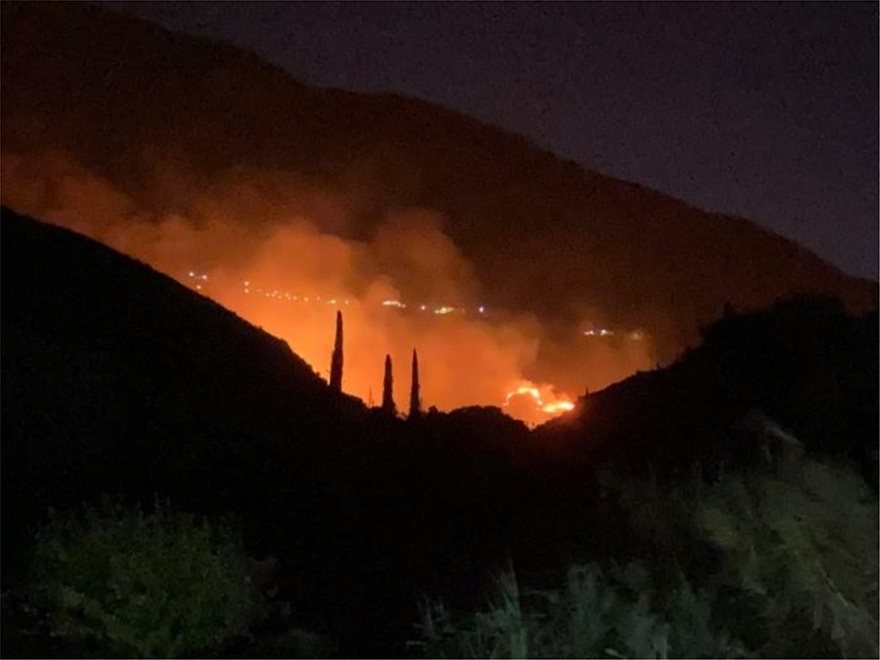Αργά το βράδυ της Παρασκευής οι δυνάμεις της Πυροσβεστικής ενισχύθηκαν καθώς σταμάτησαν οι ρίψεις από τα εναέρια μέσα.