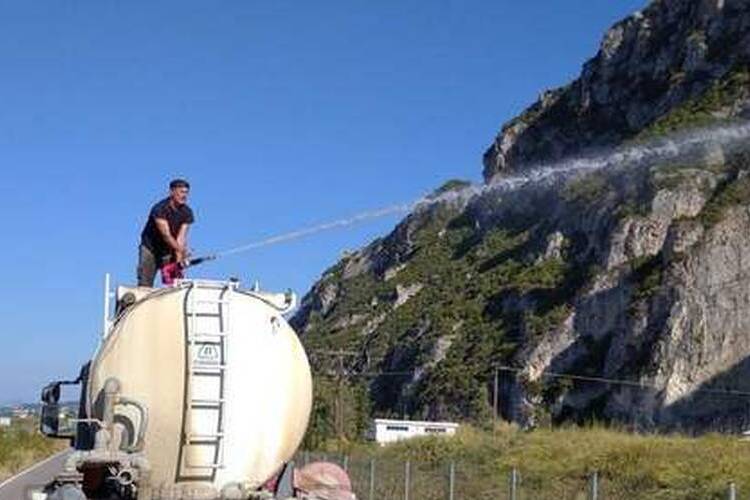 Από το δήμο διατέθηκε, επίσης, υδροφόρα και σκαπτικό μηχάνημα για τη διάνοιξη αντιπυρικής ζώνης.