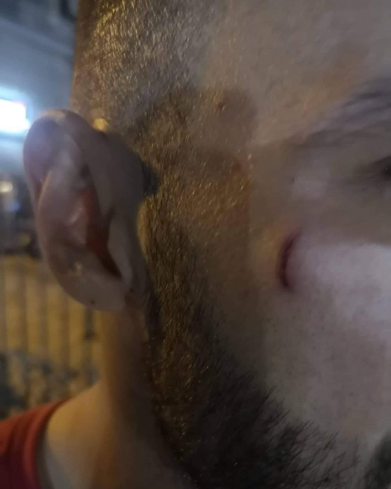 Οι φωτογραφίες δείχνουν τον Μπέτσκο να έχει μια μεγάλη πληγή στο πρόσωπό του, απόρροια της συμπλοκής του με τους οπαδούς της αντίπαλης ομάδας.