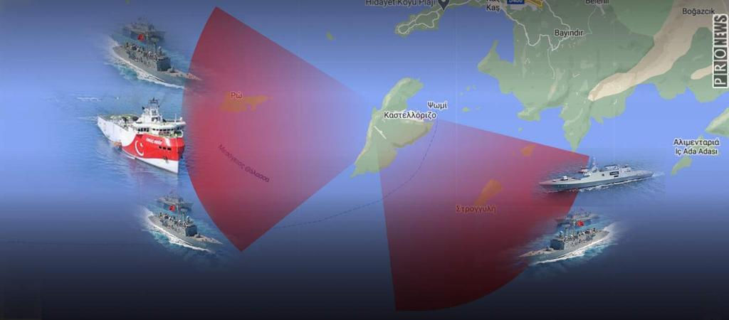 Ο τουρκικός στολίσκος του Oruc Reis, υποστηριζόμενος από επιπλέον πολεμικά πλοία θα επιχειρήσει να «στραγγαλίσει» το σύμπλεγμα των νησιών, εντοπίζοντας την κίνησή του στα τρία νησιά που υπάρχουν φρουρές εθνοφυλάκων: Την Μεγίστη, την Ρω και την Στρογγύλη.