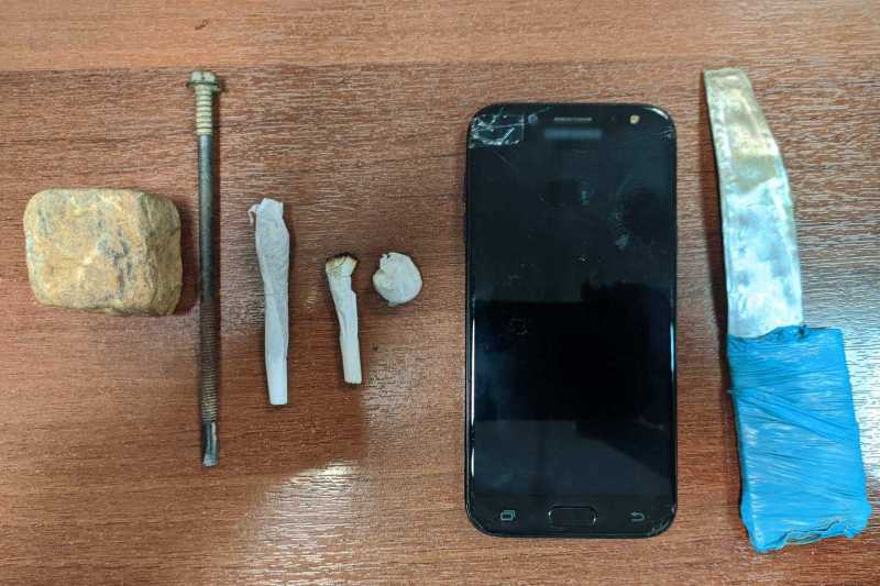 Στο Κατάστημα Κράτησης Χανίων η έρευνα πραγματοποιήθηκε σε δύο κελιά της Γ’ πτέρυγας, όπου βρέθηκαν και κατασχέθηκαν: αυτοσχέδιο μαχαίρι, αυτοσχέδιο κατσαβίδι και πέτρα, μικροποσότητα χασίς, και κινητό τηλέφωνο.