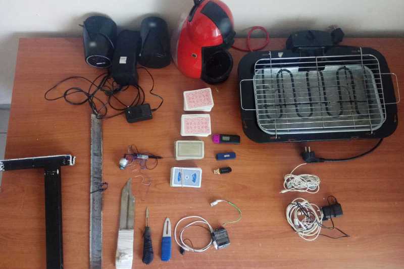 Στο Κατάστημα Κράτησης Κομοτηνής η έρευνα πραγματοποιήθηκε σε θάλαμο κράτησης και σε κοινόχρηστους χώρους, όπου βρέθηκαν και κατασχέθηκαν: 6 αυτοσχέδια μαχαίρια, 3 κινητά τηλέφωνα, 2 φορτιστές τηλεφώνων, 2 αυτοσχέδιοι φορτιστές τηλεόρασης και συρματόσχοινο με λαβές.