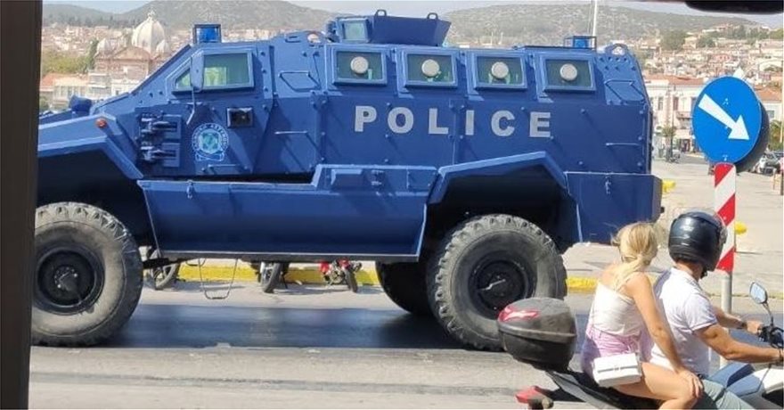 Στη Μυτιλήνη έφτασαν σήμερα το πρωί τα τεθωρακισμένα οχήματα της ΕΛΑΣ.