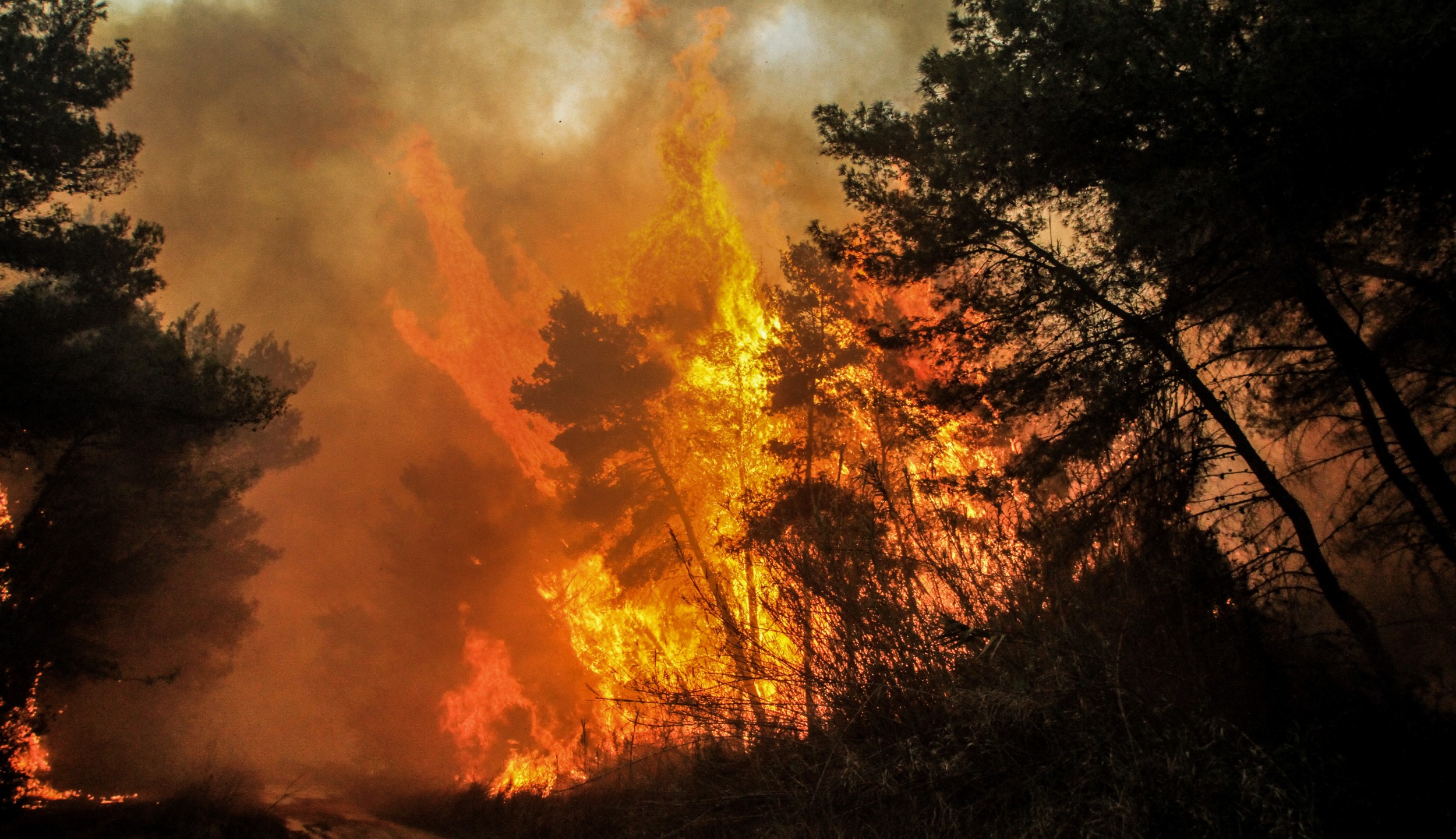 Οι άνεμοι είναι ισχυροί και το μέρος δύσβατο. Οι φλόγες κατακαίουν τα πεύκα και το ύψος τους ξεπερνά και τα 20 μέτρα.