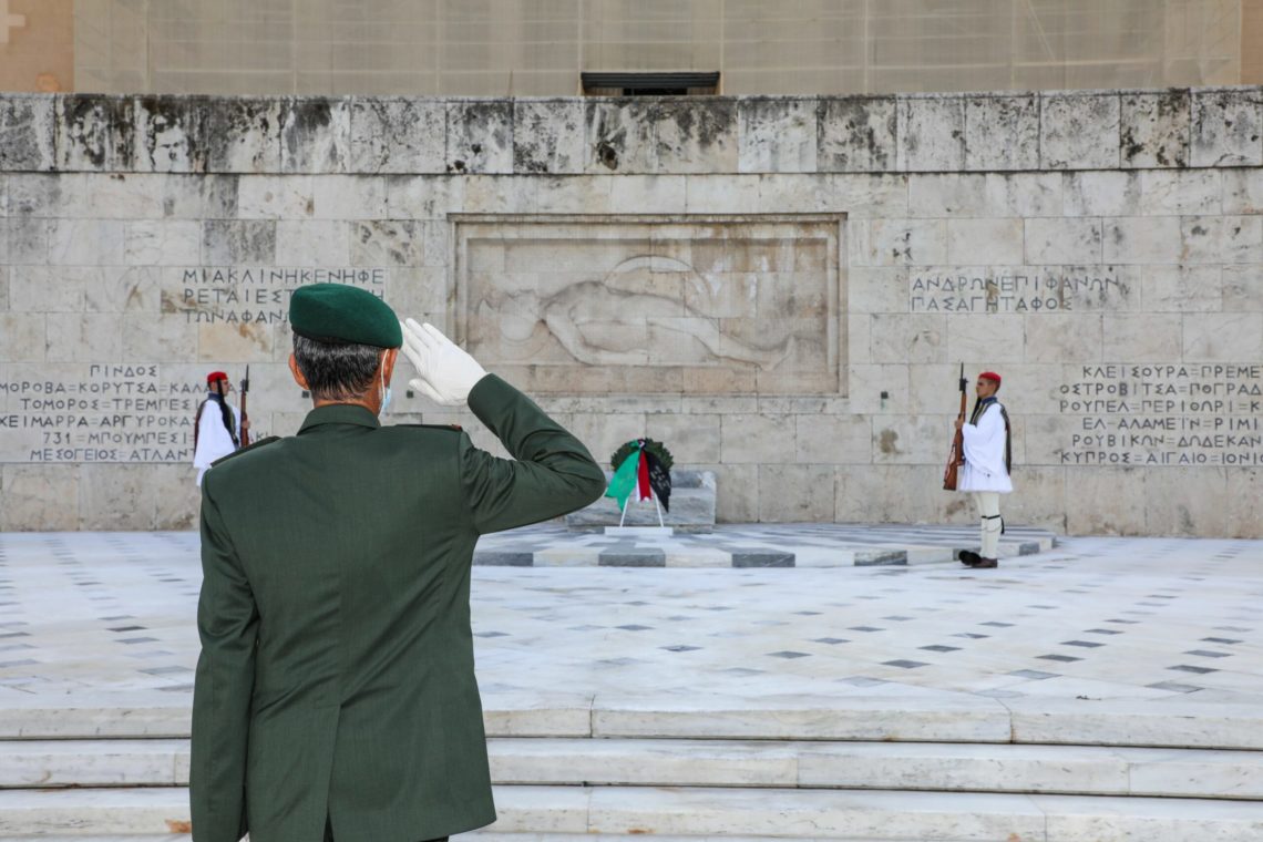 Την Τρίτη ο Αρχηγός ΓΕΕΔ των ΗΑΕ κατέθεσε στεφάνι στο Μνημείο του Αγνώστου Στρατιώτη και στη συνέχεια επισκέφθηκε το Γενικό Επιτελείο Εθνικής Άμυνας στο Στρατόπεδο «ΠΑΠΑΓΟΥ».