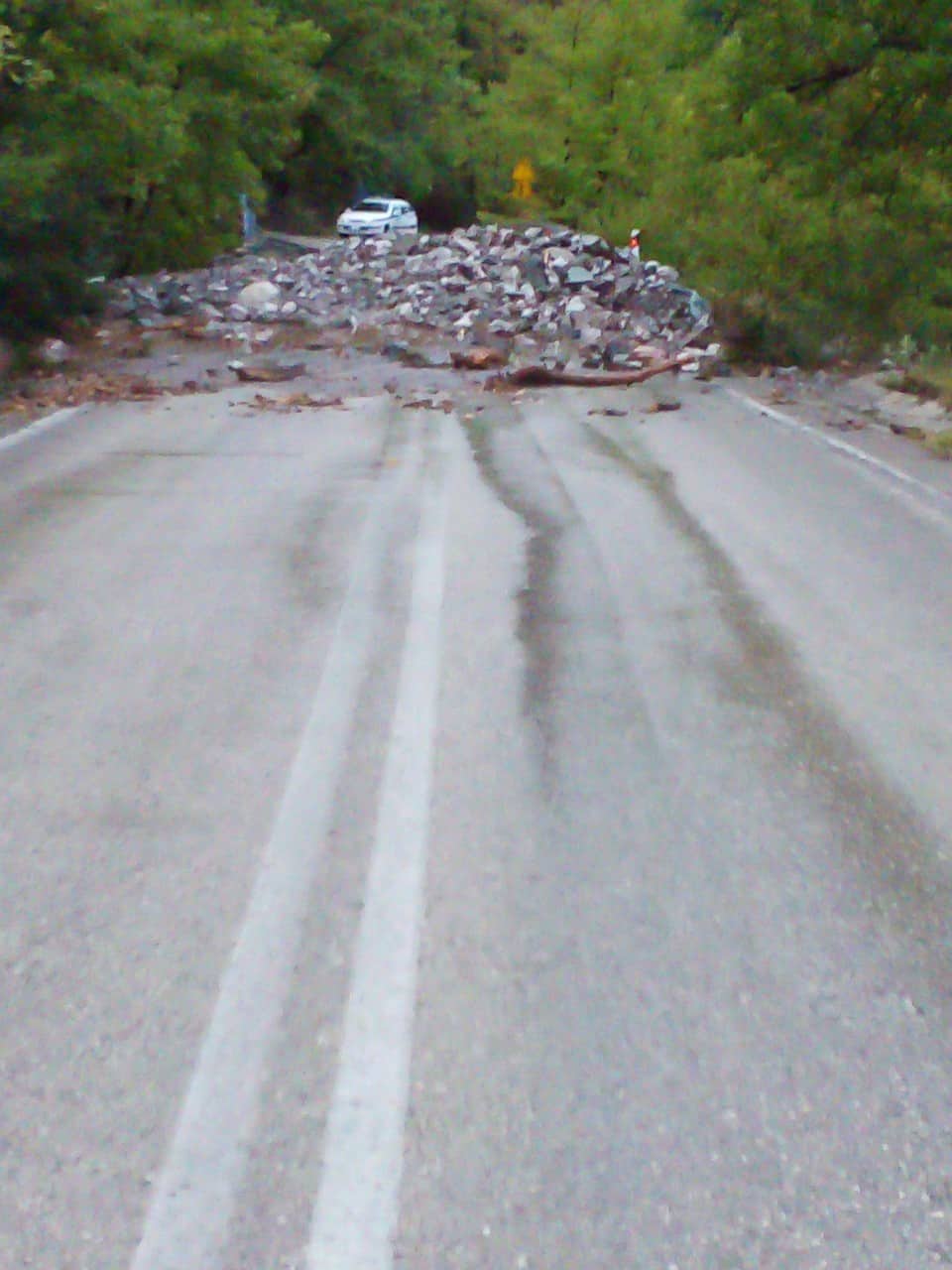 Mεγάλος όγκος φερτών υλικών έφραξαν το δρόμο προς την Χούνη. Στο σημείο βρίσκεται η αστυνομία και έχει κληθεί μηχάνημα για να ανοίξει τον δρόμο που βλέπετε στις παρακάτω φωτογραφίες.