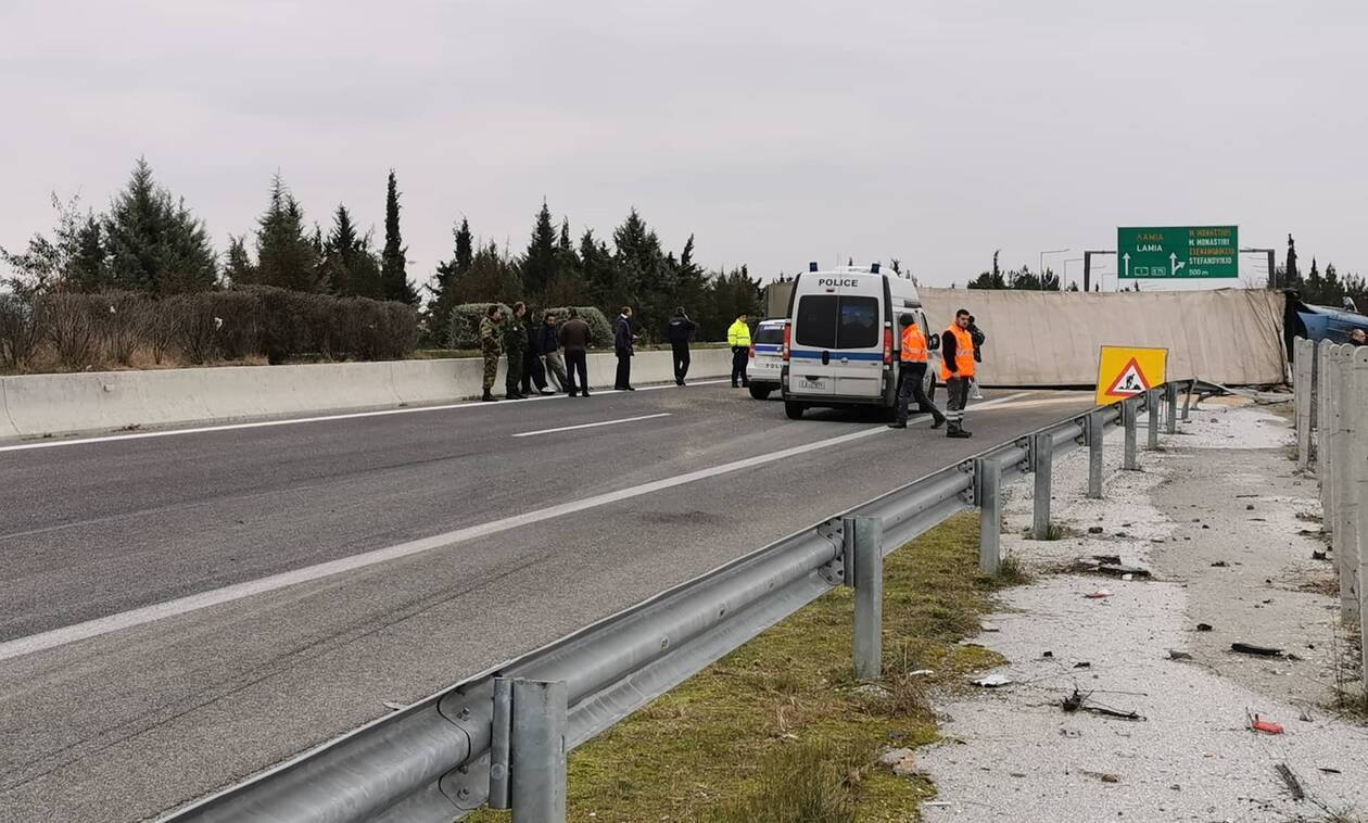 Σύμφωνα με το larissanet, μια νταλίκα ενώ κινούνταν στην Εθνική οδό εξετράπη της πορείας της και ανετράπη στο κόμβο του Κιλελέρ.