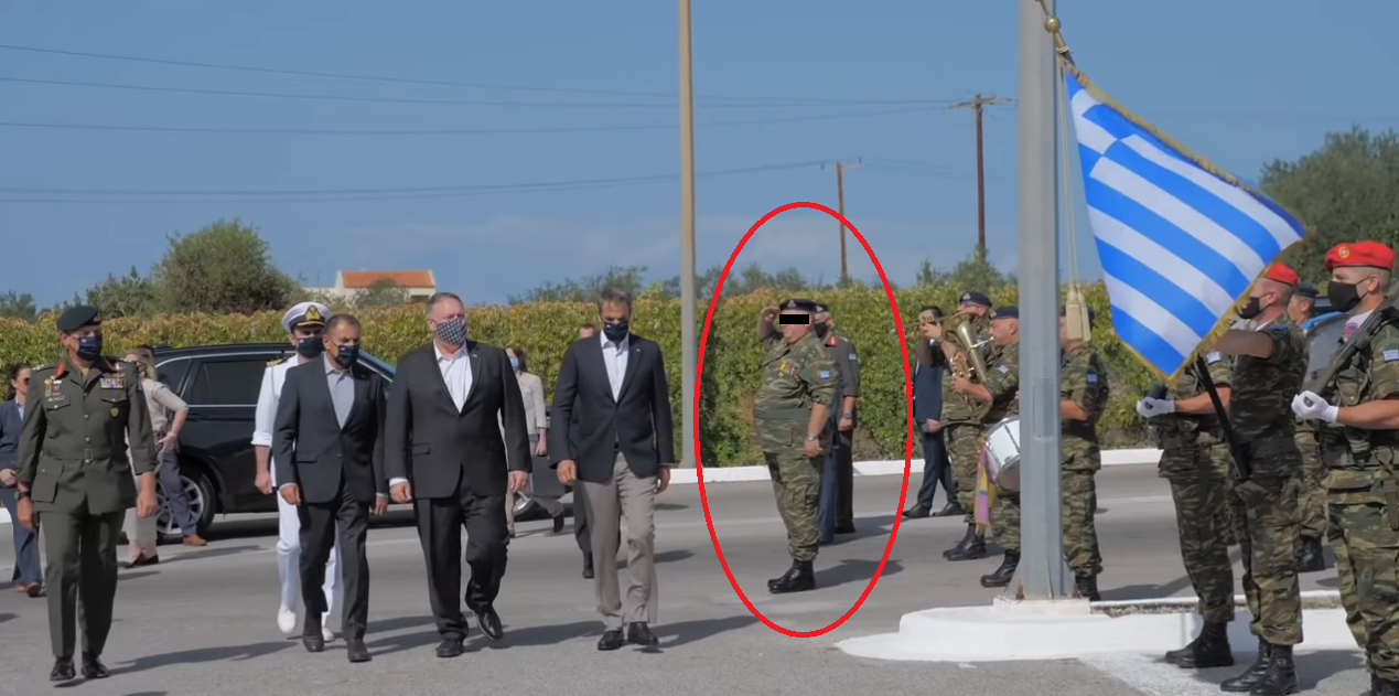 Εντύπωση έκανε ο επικεφαλής του αγήματος που απέδωσε τιμές στον Αμερικανό υπουργό Εξωτερικών Μάικ Πομπέο και στον Έλληνα πρωθυπουργό Κ.Μητσοτάκη, οι οποίοι επισκέφθηκαν τη βάση τη Σούδας στην Κρήτη.