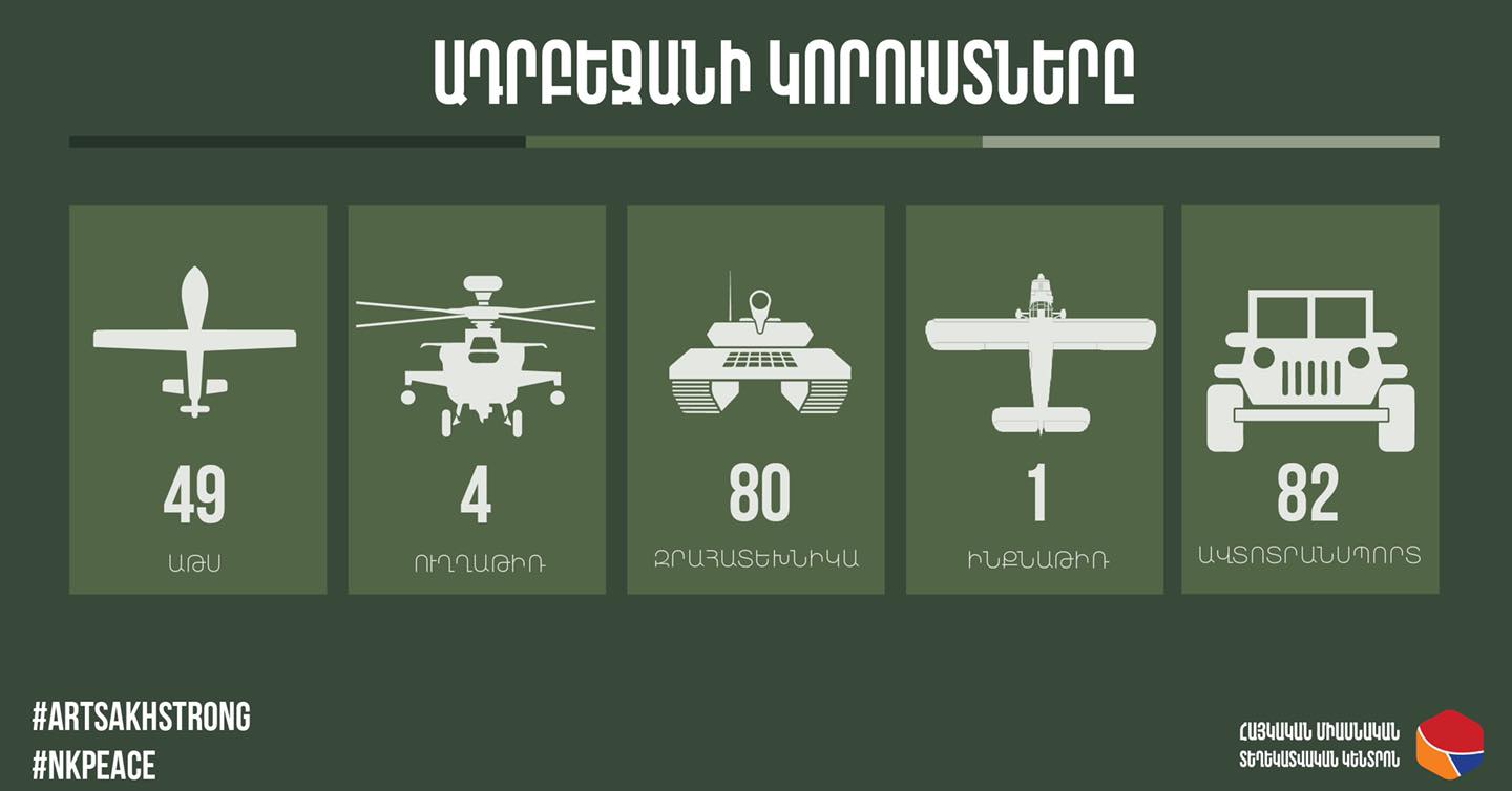 Η κρατική τηλεόραση της Αρμενίας παρουσίασε πίνακα με τις απώλειες που είχαν οι δυνάμεις των Αζέρων, κατά την επίθεση που ξεκίνησαν εναντίον του Ναγκόρνο Καραμπάχ και που και εδώ την τιμητική του είχε και πάλι το σύστημα Kornet.