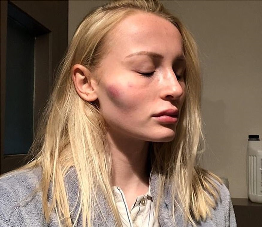 Στις επόμενες φωτογραφίες όμως το νεαρό μοντέλο εμφανίζεται χτυπημένη στο πρόσωπο από την κακοποίηση που υπέστη στα χέρια του άνδρα, τον οποίο, πάντως, η ίδια δεν κατονόμασε.