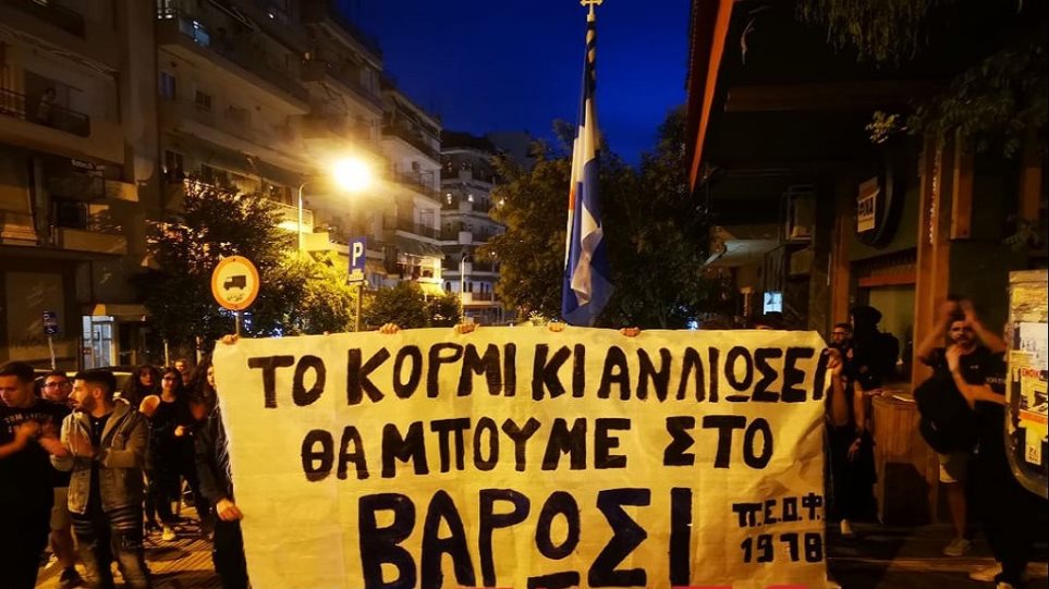 Φοιτητές στη Θεσσαλονίκη πραγματοποίησαν εκδήλωση διαμαρτυρίας, για την παράνομη ενέργεια της Τουρκίας να προχωρήσει σε επέκταση χρήσης μέρους του παραλιακού μετώπου της περίκλειστης πόλης της Αμμοχώστου.