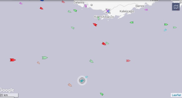 Λίγο έξω από τα Εθνικά Χωρικά Ύδατα των 6 ν.μ. και στο βορειοδυτικό άκρο της NAVTEX της 11ης Οκτωβρίου και νότια από το Καστελόριζο πλέει αυτή την ώρα το τουρκικό ερευνητικό Oruc Reis, με τα δύο βοηθητικά του πλοία, Ataman και Cengiz Han.