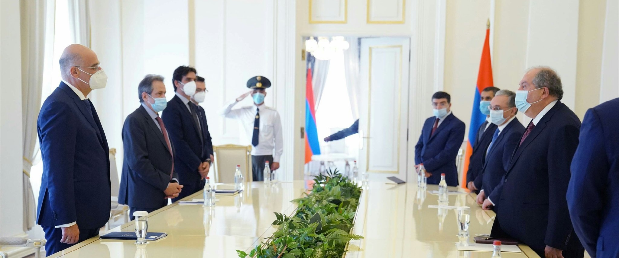 O υπουργός Εξωτερικών της Ελλάδας, Νίκος Δένδιας, ολοκλήρωσε την επίσκεψη του στο Ερεβάν με τις συναντήσεις του με τον πρόεδρο, Αρμέν Σαρκισιάν (Armen Sarkissian) και τον πρωθυπουργό της Αρμενίας, Νικόλ Πασινιάν (Nikol Pashinyan).