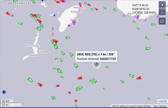 Κανονικά συνεχίζει τις έρευνές του το τουρκικό ερευνητικό σκάφος Oruc Reis.