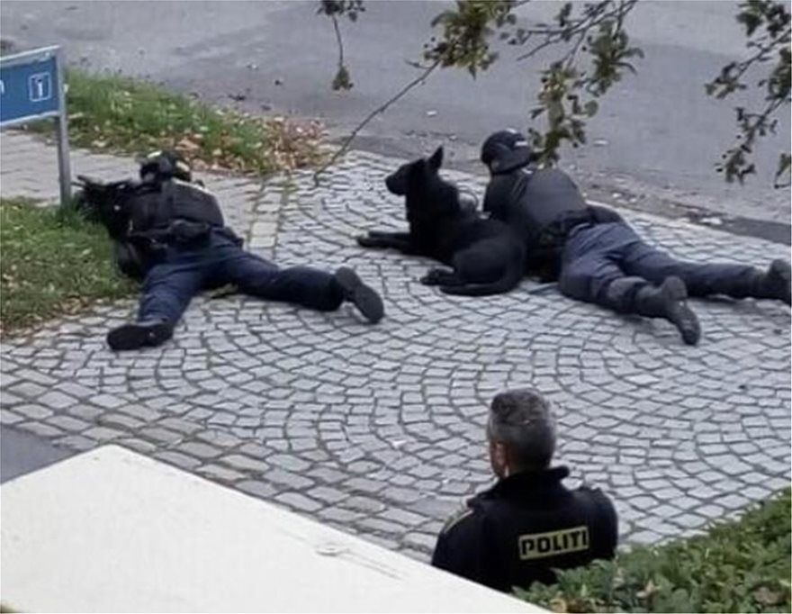 Στις φωτογραφίες που έδωσαν δανέζικα μέσα ενημέρωσης φαίνεται ο Μάντσεν να είναι στο έδαφος φορώντας κάτι που μοιάζει με ζώνη εκρηκτικών ενώ ακόμα και ελεύθεροι σκοπευτές τον σημαδεύουν με το δάχτυλο στη σκανδάλη.