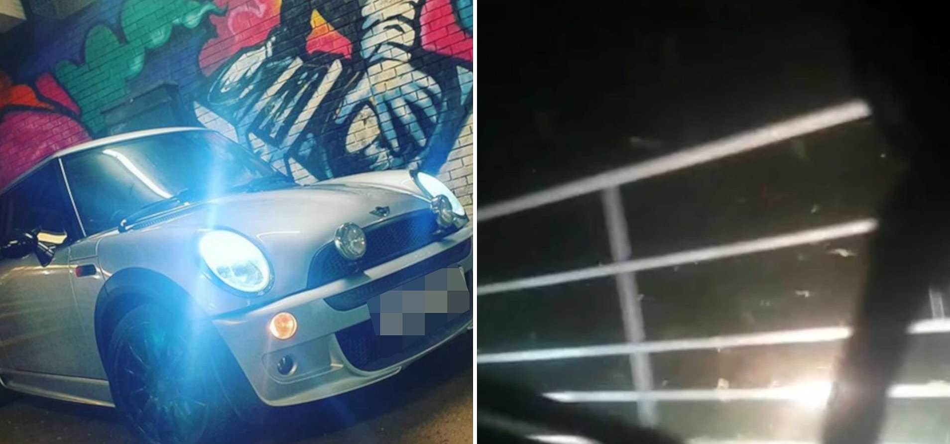 Το Mini Cooper γλιστρά από αριστερά στα δεξιά, ενώ ο νεαρός παλεύει να ανακτήσει τον έλεγχο του οχήματος. Ωστόσο, δεν τα καταφέρνει… και τελικά πέφτει σε μια μεταλλική περίφραξη.