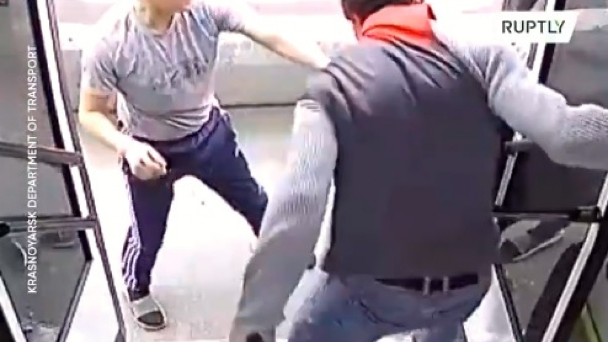 Το απίστευτο περιστατικό σημειώθηκε σε λεωφορείο στο Κρασνογιάρσκ και το κατέγραψε η κάμερα ασφαλείας του λεωφορείου.