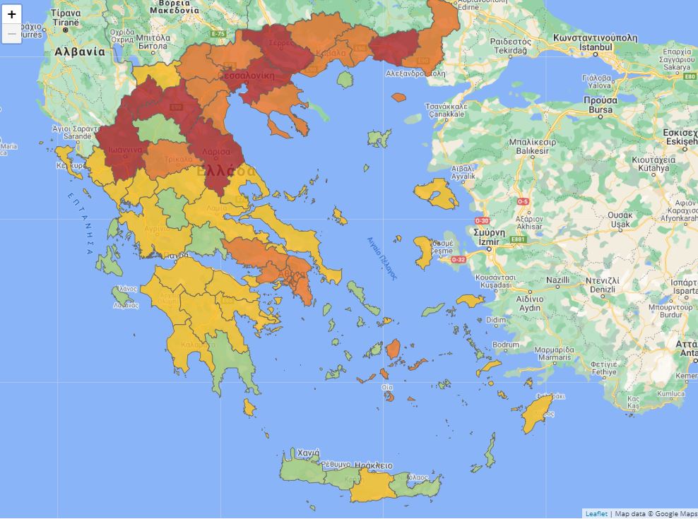 O χάρτης για τον κορωνοϊό μετά τις χθεσινές αλλαγές: