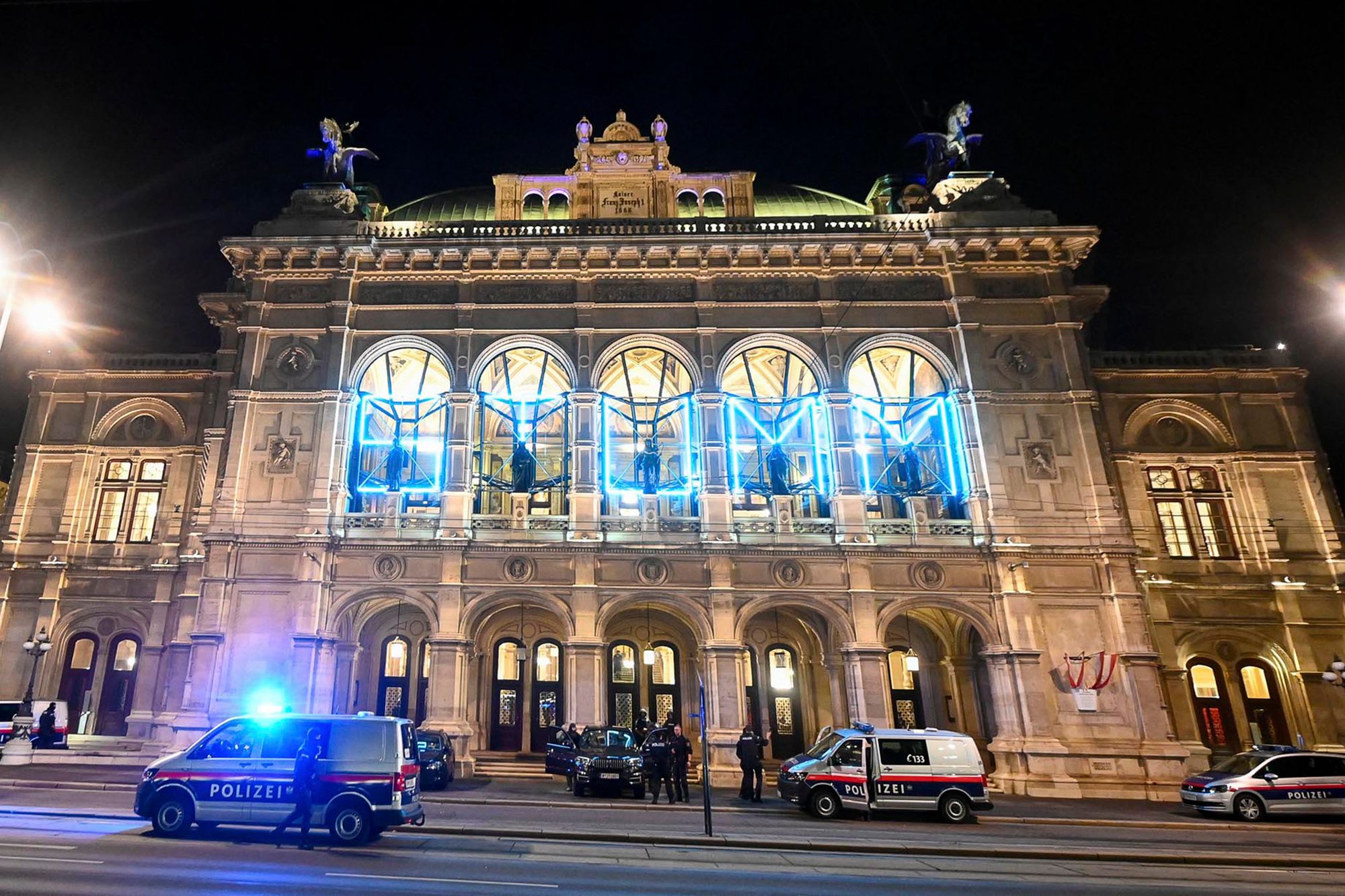 Οι τρομοκρατημένοι θεατές της όπερας, έλαβαν εντολή από την αστυνομία να παραμείνουν στο εσωτερικό του κτιρίου, όταν κατέφθασε η είδηση για τις κοντινές επιθέσεις και η Φιλαρμονική Ορχήστρα της Βιέννης άρχισε να παίζει μουσική για να τους ηρεμήσει. Τα πλάνα δείχνουν την ορχήστρα να παίζει, λίγο προτού πέσει νεκρός από πυρά αστυνομικός ο 20χρονος τζιχαντιστής, έχοντας πρώτα σκοτώσει 5 άτομα και τραυματίσει άλλα 16, «γαζώνοντας» πρώτα όποιον έβρισκε στον δρόμο του και φορώντας μια ψεύτικη ζώνη εκρηκτικών.
