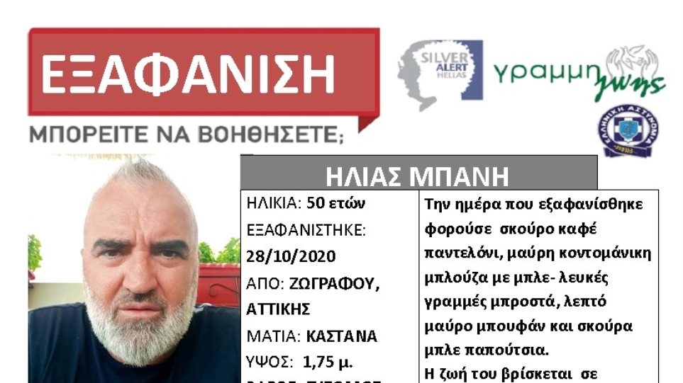 Σε εξέλιξη βρίσκεται η υπόθεση εξαφάνισης του πατέρα δυο παιδιών από την περιοχή του Ζωγράφου.