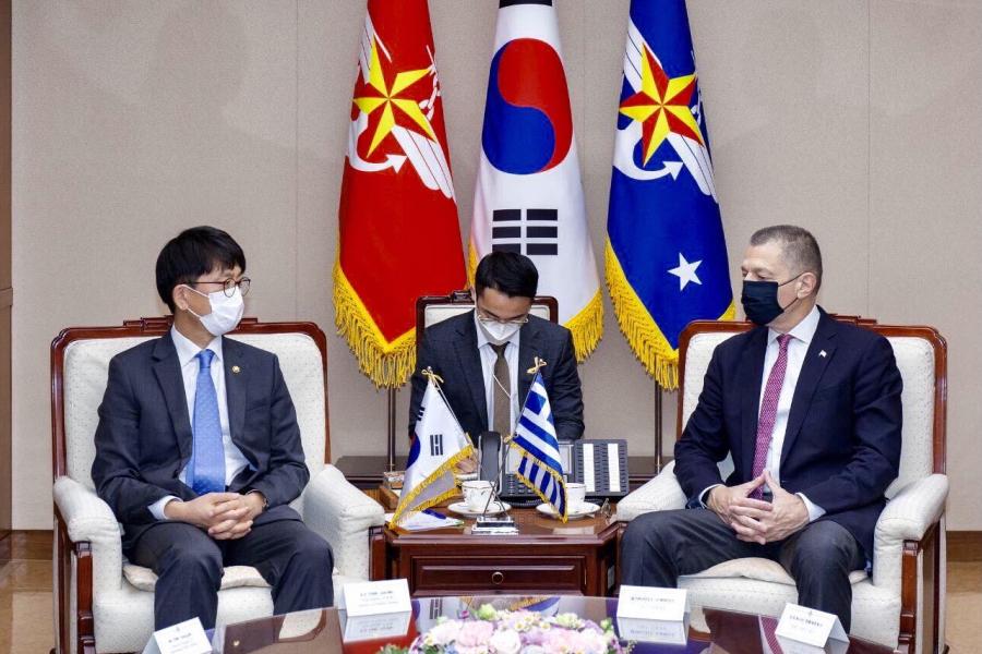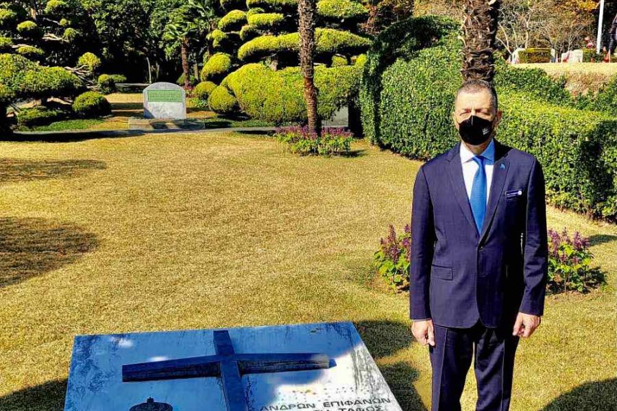 Τον υφυπουργό συνόδευε η πρέσβης της Ελλάδας στην Κορέα, Ιφιγένεια Κοντολέοντος.